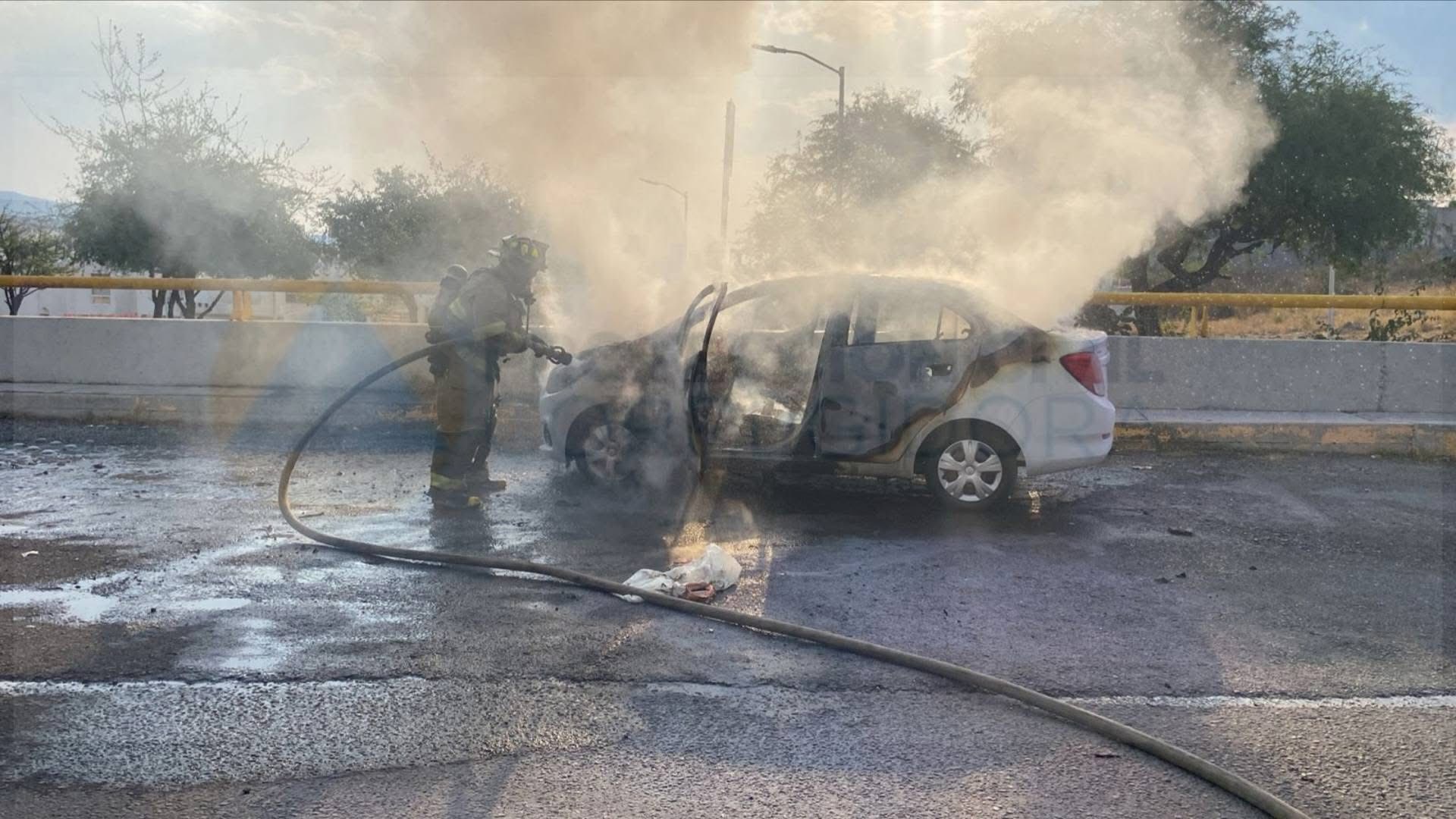 Incendio de vehículo en Corregidora deja daños materiales