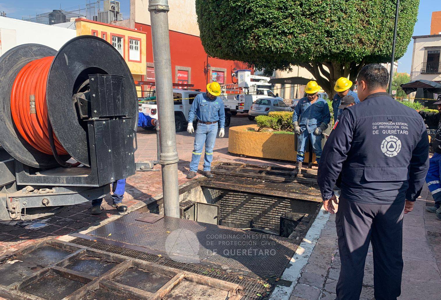 Buscan a dos personas caídas en cárcamo de Corregidora